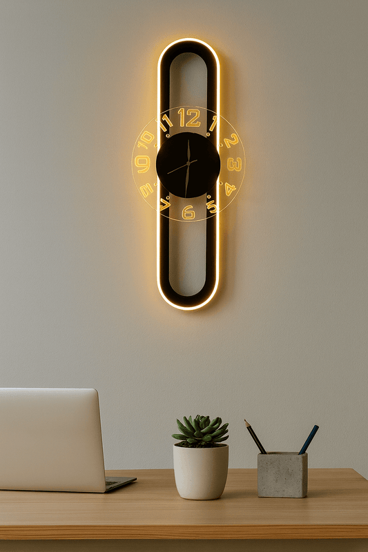 AuraClock 2-in-1 vertical and Horizontal clock Home and Office Wall with neon light ambiance